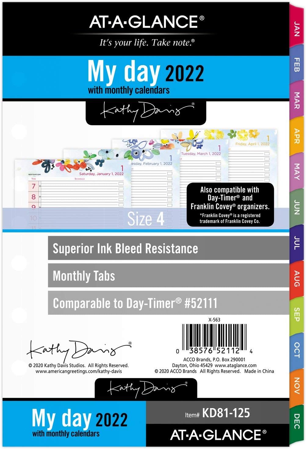 AT-A-GLANCE 2022 Recarga Diária e Mensal para Agenda Diária AT-A-GLANCE, 52111 Day-Timer, 5-1/2 x 8-1/2, Tamanho 4, Kathy Davis (KD81-125)