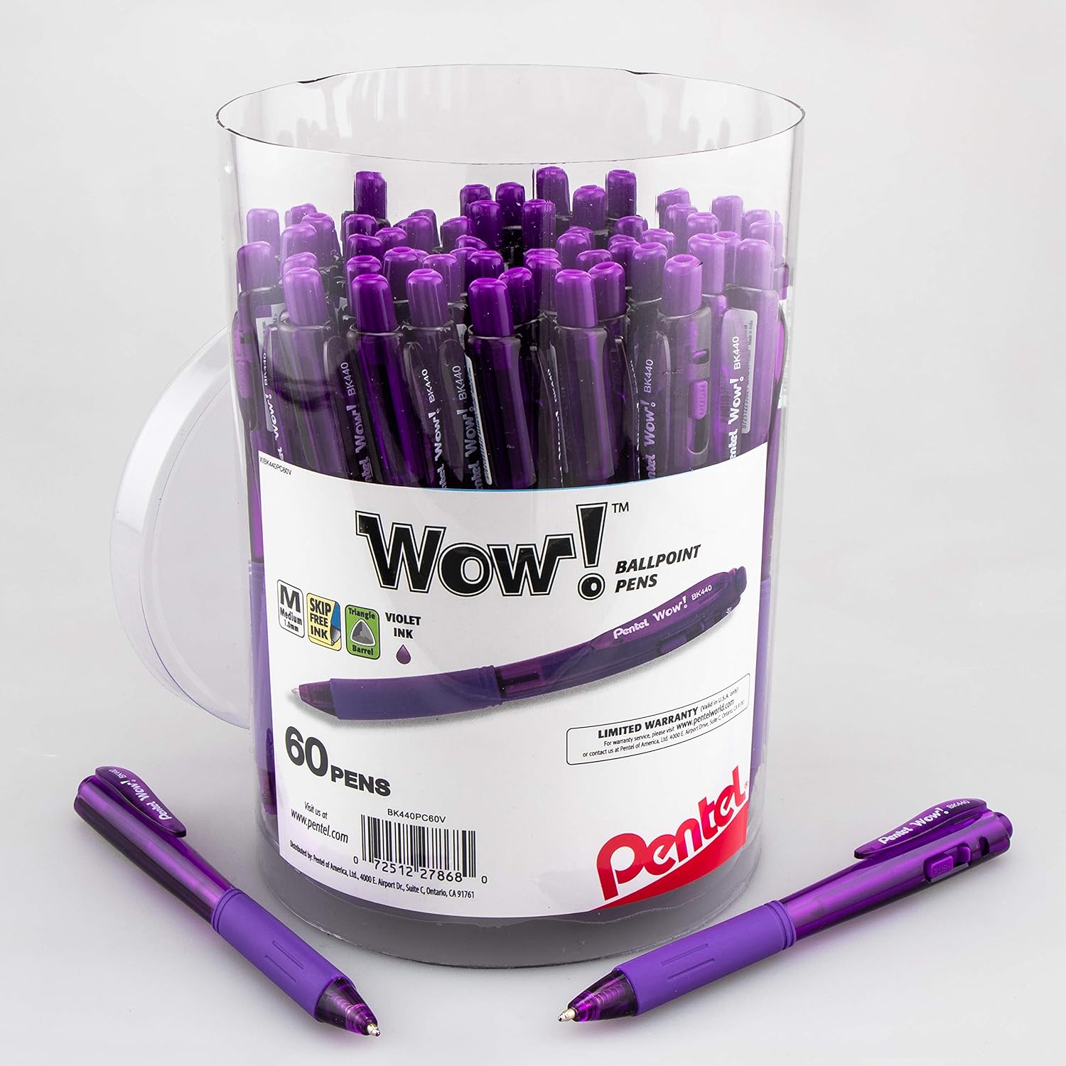 Caneta esferográfica Pentel WOW! (1,0mm) traço médio, tinta violeta, 60 unidades no tubo (BK440PC60V)