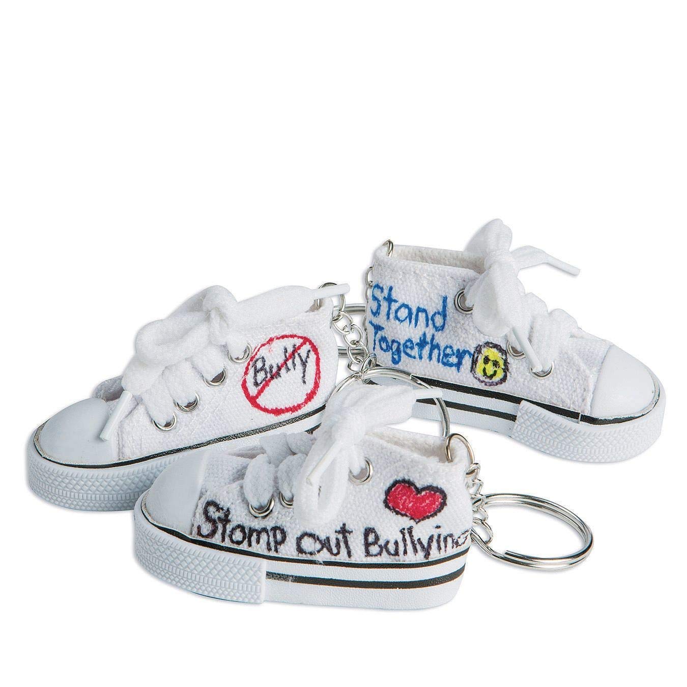 Chaveiro Color-Me Sneaker DIY - Pacote com 12 O chaveiro Color-Me Sneaker DIY é perfeito para grupos maiores! As crianças podem personalizar este lindo chaveiro de lona com marcadores permanentes ou de tecido, gemas e muito mais. Os suprimentos de decoração são vendidos separadamente. Cada tênis mede 3 polegadas de comprimento por 1-1/2 polegadas de largura. Este produto é fabricado nos Estados Unidos e apresenta as seguintes dimensões: 12,25 polegadas de comprimento, 8,75 polegadas de largura e 2,63 polegadas de altura, com um peso de