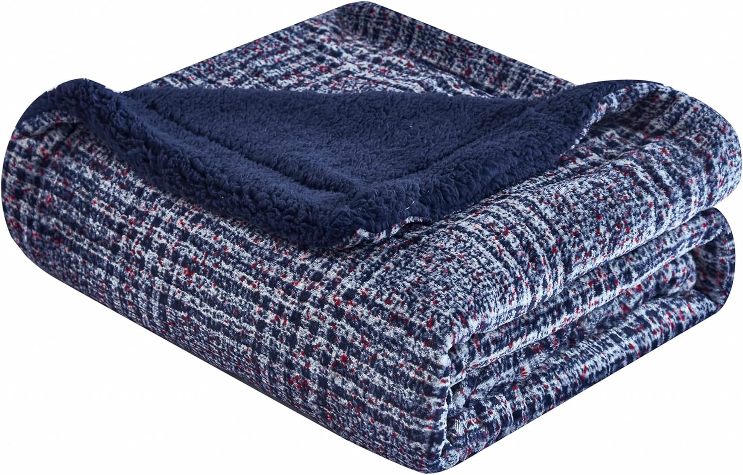 Cobertor Reversível de Veludo Azul-Marinho e Sherpa da HomeRoots