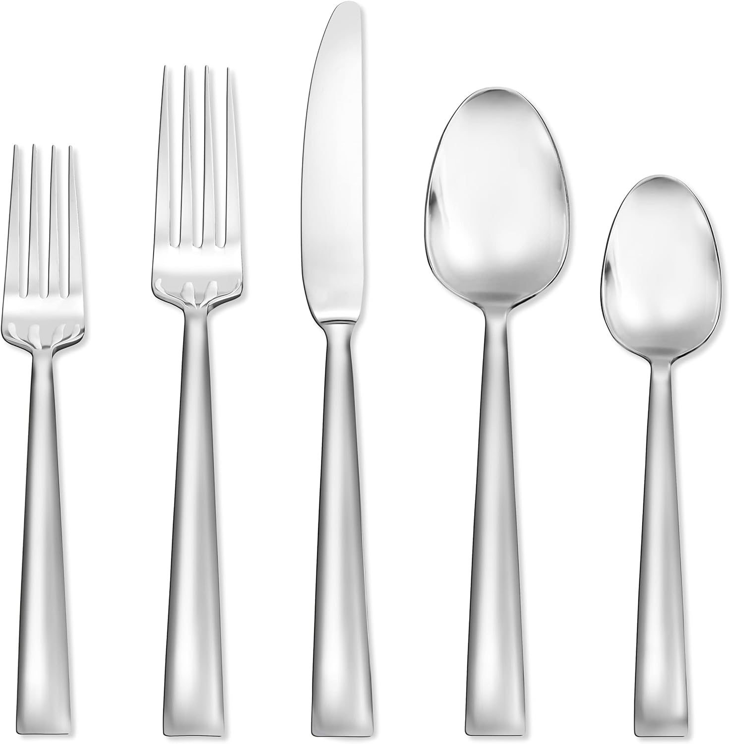 Este Conjunto de Talheres de 20 peças da Hampton Forge é fabricado em aço inoxidável, proporcionando durabilidade e resistência máximas. Com seus detalhes feitos em aço inoxidável metálico, este conjunto oferece elegância e sofisticação à sua mesa. Cuidar deste conjunto é fácil, pois é seguro para lava-louças. O conjunto inclui quatro garfos de jantar, quatro colheres de chá, quatro facas de jantar, quatro colheres de jantar e quatro garfos de salada, com um peso total de 3 libras. Com dimensões de 10,91 x 8,07 x 2,87 poleg
