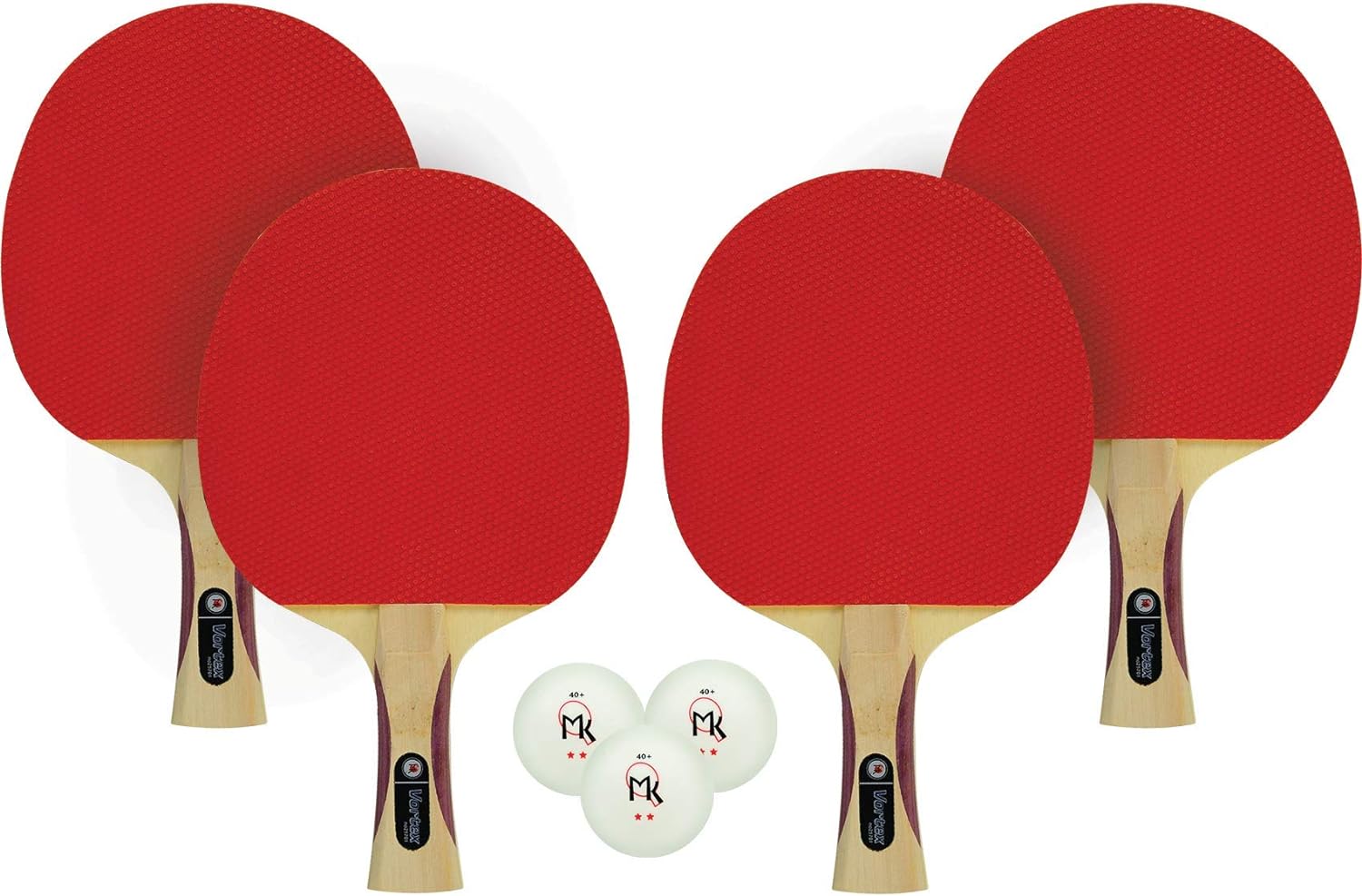 Conjunto de Raquete de Ping Pong Martin Kilpatrick Vortex - Superfície de Borracha Pips-Out com Camada de Espuma - Cabo Flared - Bolas Grátis Incluídas - Recomendado para Jogadores Iniciantes de N