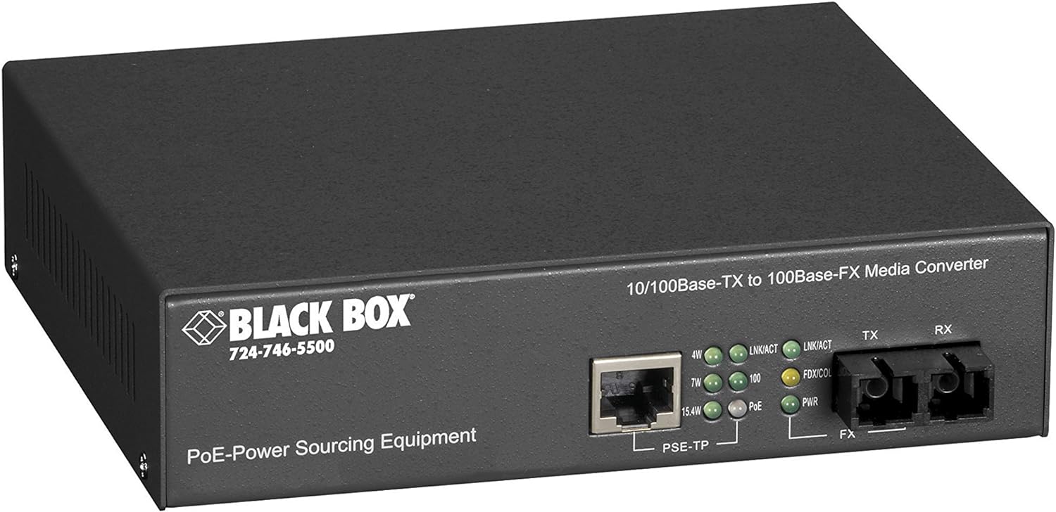 Conversor de Mídia PoE PSE Black Box, 10BASE-T/100BASE-TX para 100BASE-FX, Multimodo, SC, 2 km
