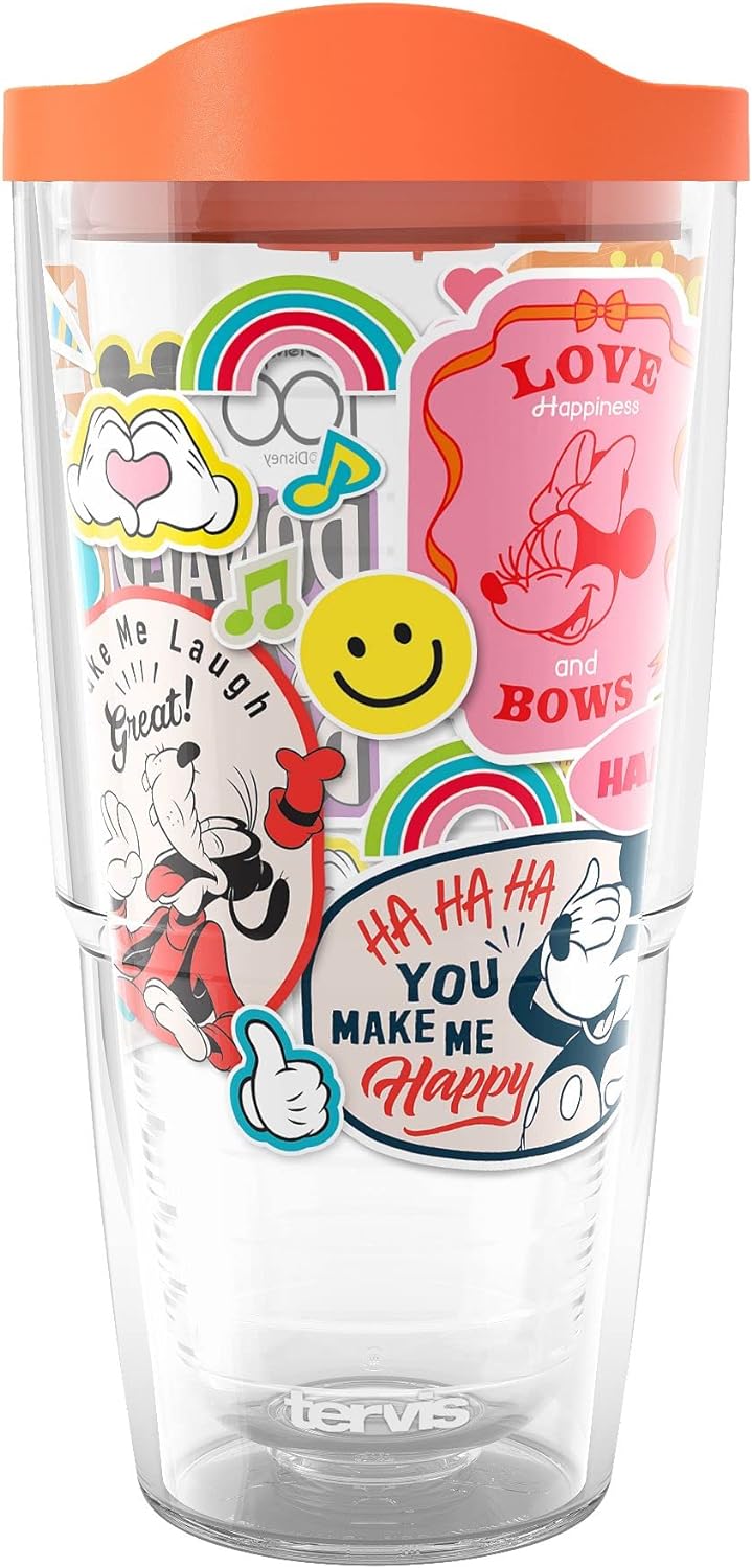 Copos de viagem de parede dupla isolados Tervis Disney 100º Aniversário Happy Faces Feito nos EUA Mantém Bebidas Frias e Quentes, 24oz, Clássico