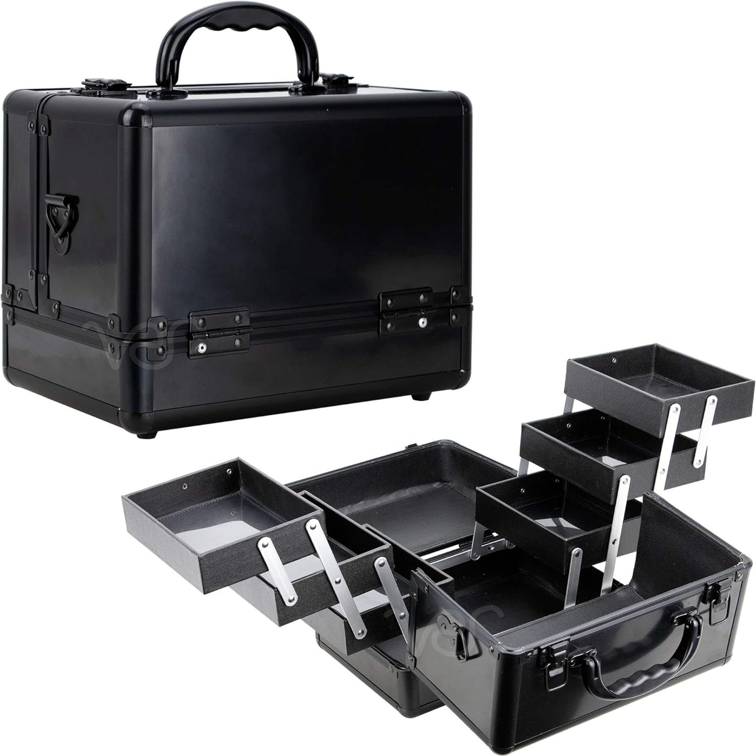 Estojo de maquiagem Sunrise Santa Maria para viagem com espaço para unhas e bandejas tipo sanfona, preto fosco, 3 libras.