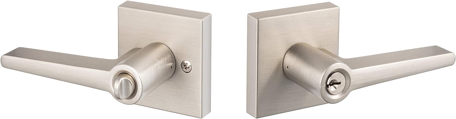 O Entry Lever Door Handle da Sure-Loc é fabricado em metal de alta qualidade com um acabamento em níquel acetinado, garantindo durabilidade e resistência. Com 15 peças inclusas, este conjunto é fácil de instalar e vem com todos os componentes necessários, incluindo ferragens para ambos os lados da porta, chaves, fechadura, parafusos, instruções de instalação e placa de batida. O design elegante e moderno deste conjunto de maçanetas é perfeito para complementar qualquer estilo de decoração de interiores. Além disso, o produto é fabricado pela renomada marca Sure-Loc Hardware, Inc., garantindo alta qualidade e des