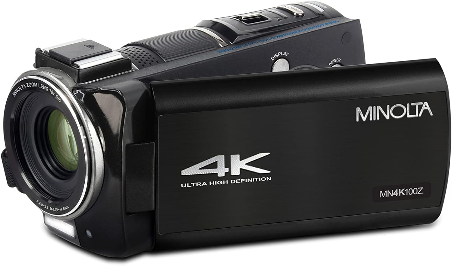 Filmadora Minolta MN4K100Z 4K Ultra HD com Zoom Óptico de 10x (Preto)
