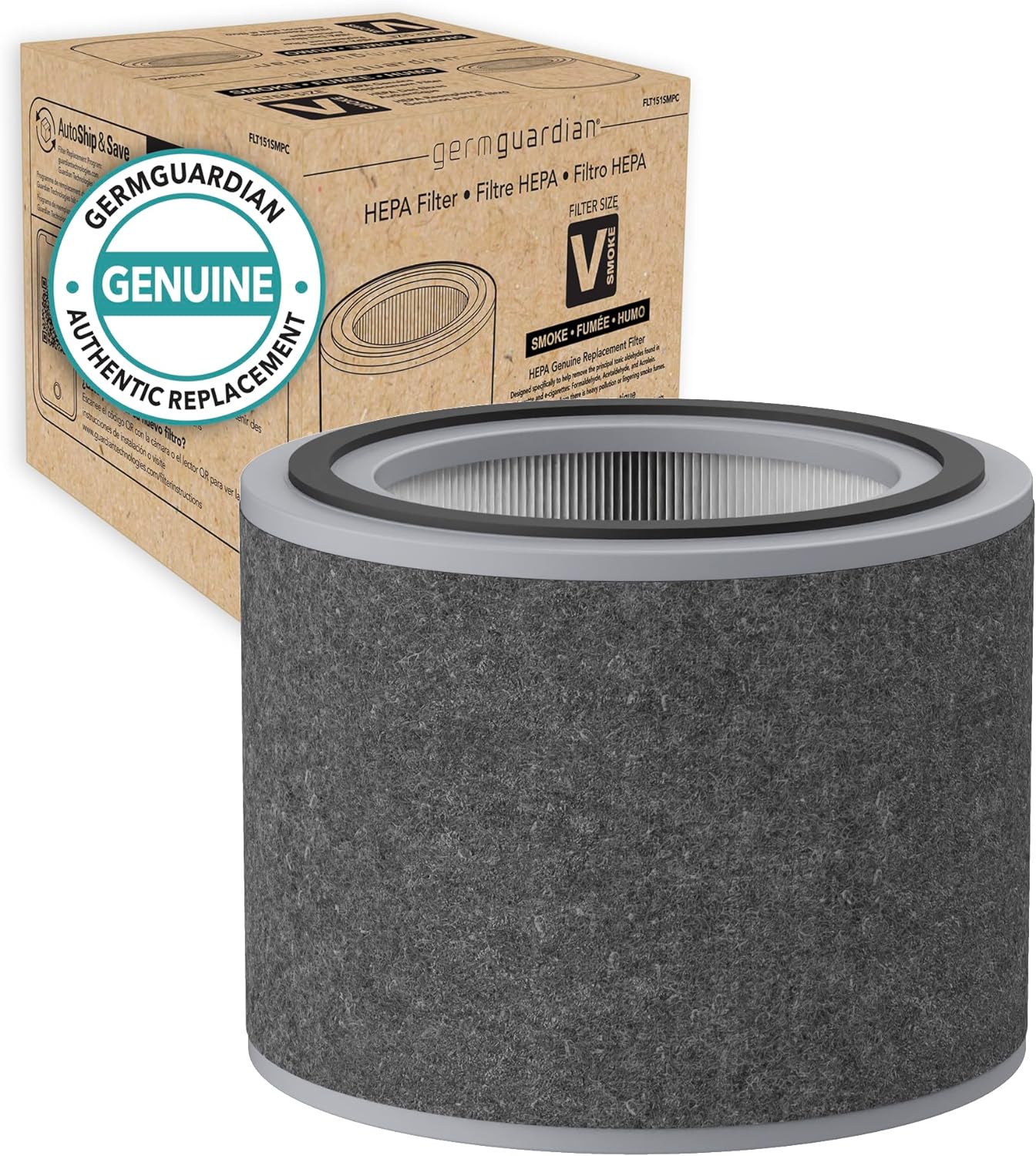 Filtro de Substituição do Purificador de Ar Genuine HEPA GermGuardian V Smoke Clear, Remove 99,97% dos Poluentes, Toxinas e Odores de Fumaça, para AirSafe Series e AC151, Preto/Cinza, FLT151SM