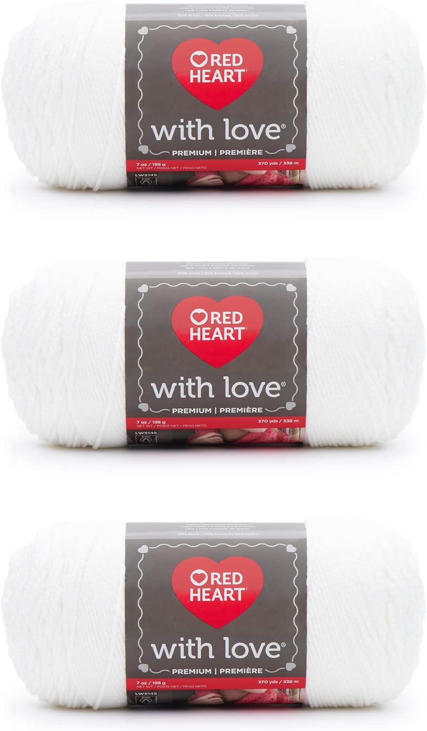 Fio Branco Red Heart com Amor - Pacote com 3 de 198g/7oz - Acrílico - 4 Médio (Fio Worsted) - 370 jardas - Tricô/Crochê