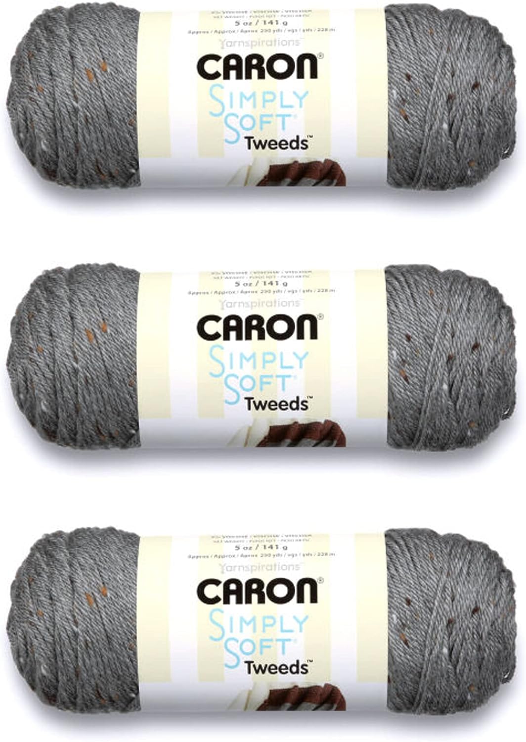 Fio Caron Simply Soft Gray Heather Tweeds - 3 Pacotes de 141g/5oz - Acrílico - 4 Médio (Médio) - 240 Yards - Tricô/Crochê