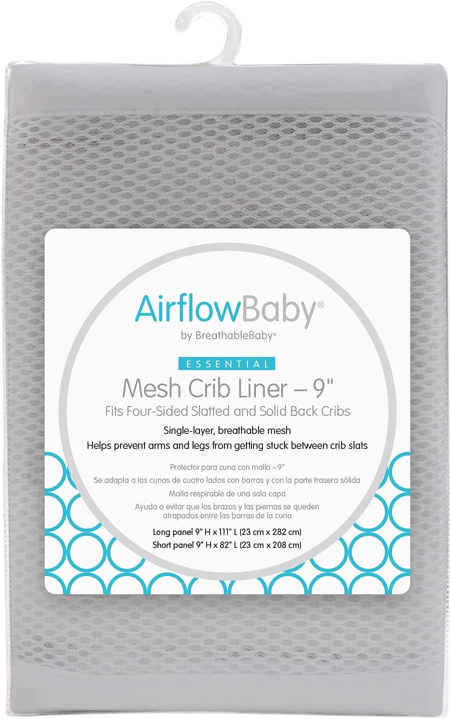 Forro de Malha Respirável AirflowBaby para Berços de Tamanho Completo, 9 H (23cm), Malha Essencial de 2mm, Cinza (Tamanho 4FS Cobertura para 3 ou 4 Lados)
