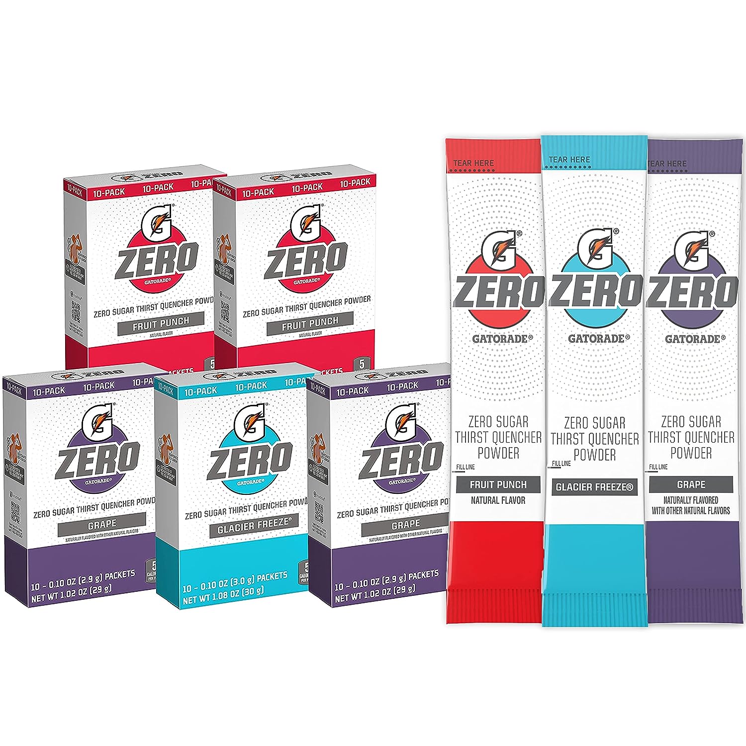 Gatorade G Zero Pó, Pacote com Variedade de Sabores Fruit Punch, Pacotes Individuais de 0,10oz - 10 unidades (Pacote com 5)