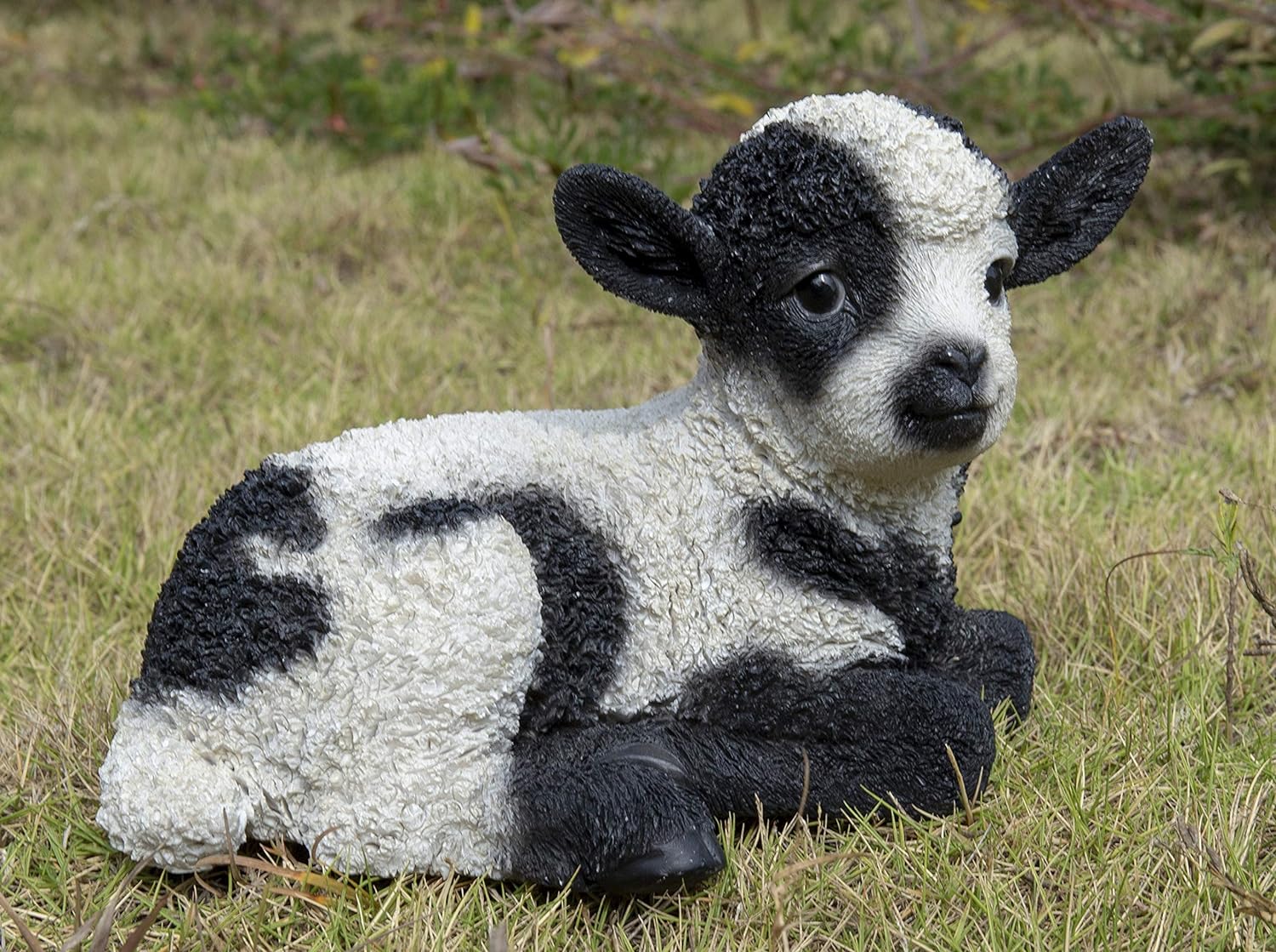Hi-Line Gift Ltd. Pequeno Cordeiro Preto e Branco deitado, Preto; Branco