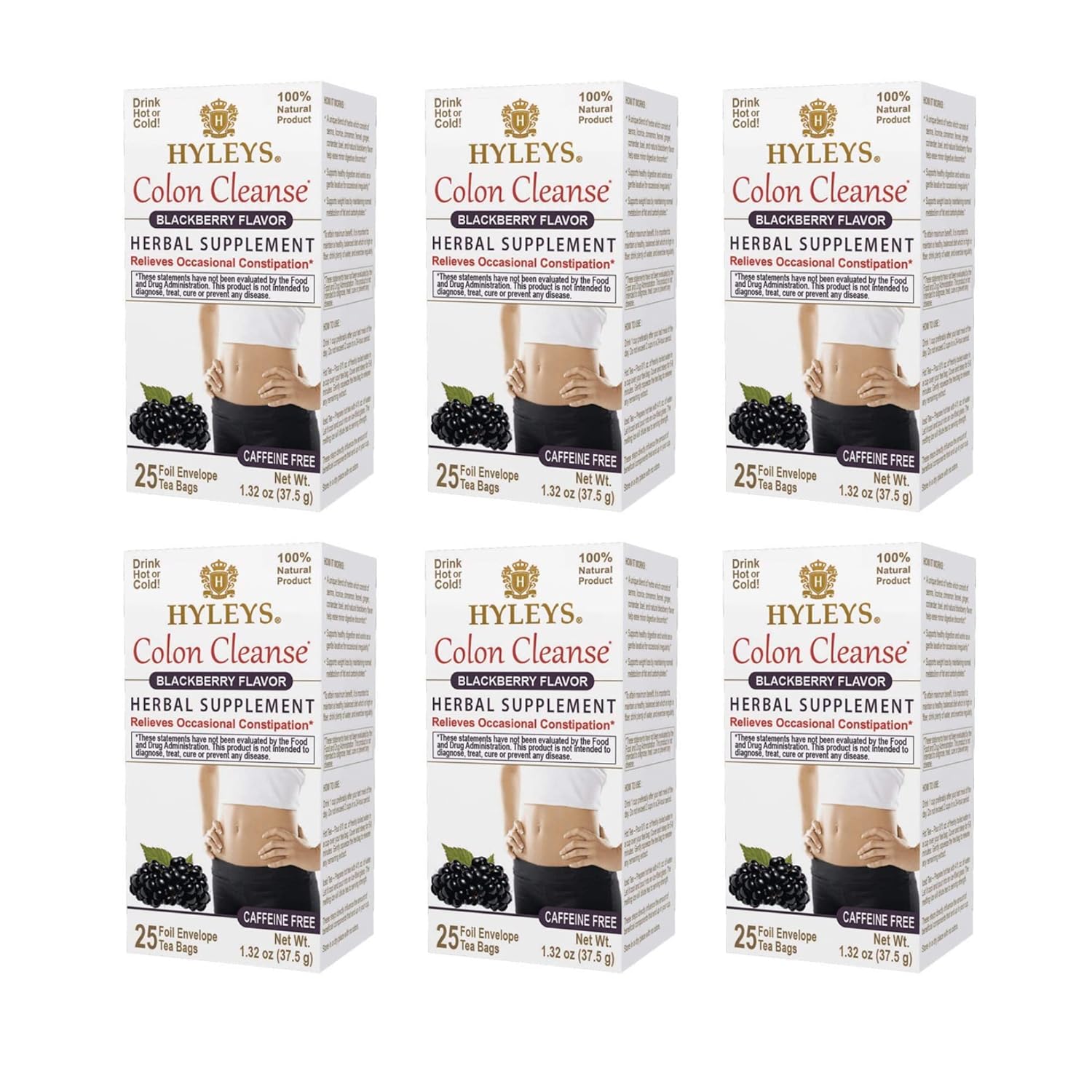 Experimente uma limpeza do cólon com as incríveis propriedades das ervas naturais contidas no chá Hyleys Colon Cleanse. Com uma mistura única de sene, alcaçuz, canela, funcho, gengibre, coentro, bael e sabor natural de mirtilo e framboesa, este chá trabalha suavemente como laxante para irregularidades ocasionais e ajuda na manutenção do metabolismo normal de gorduras e carboidratos, promovendo assim a perda de peso. Com uma embalagem de 6 packs contendo 25 saquinhos de chá cada, você pode desfrutar dos benefícios desta fórmula