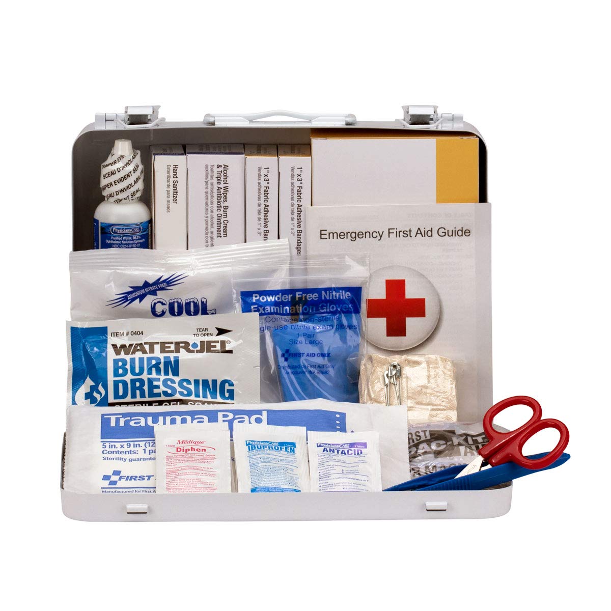 Procurando por um kit de primeiros socorros para o seu veículo? O First Aid Only 25-person Vehicle First Aid Kit é a solução ideal para manter você e sua equipe seguros em caso de acidentes. Este kit contém 114 suprimentos essenciais de primeiros socorros, que são suficientes para tratar até 25 pessoas. Ele atende aos padrões ANSI A+ e OSHA, garantindo a conformidade com regulamentações de saúde e segurança. O estojo metálico durável possui travas de fácil liberação para acesso rápido em situações de emergência, sendo ideal para ser transportado em caminhões de entrega, veículos de frota, caminhões de re