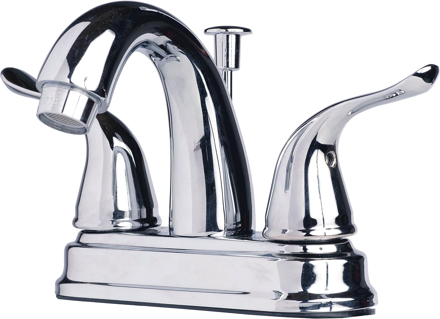 Upgrade your bathroom with this stylish 4-inch center set lavatory faucet. Inspired by the beauty and harmony created by the waves, the elegant, one-piece curved handles and sleek spout complement any decor. Constructed with solid brass for maximum durability, this faucet features elegant metal lever handles for ease of operation and precise temperature control. The high arc spout provides more clearance and better access to the sink. Offered in three popular finishes, this lavatory faucet brings a fresh new look to the bath. For a durable and elegant addition to your bathroom, choose this stylish lavatory faucet.