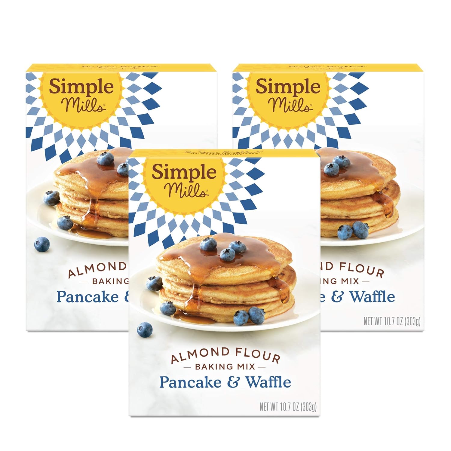 Mix de panqueca e waffle de farinha de amêndoa Simple Mills, Original - Livre de glúten, baseado em plantas, amigável ao paleo, café da manhã 10.7 onças (pacote com 3)