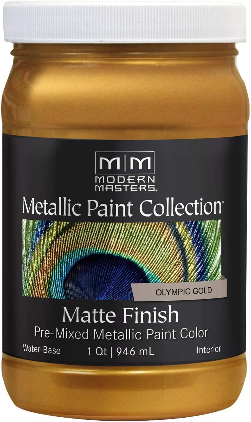 Modern Masters 1 qt MM659 Olympic Gold Metallic Paint Collection Water-Based Decorative Metallic Paint Mestres Modernos 1 qt MM659 Tinta Metálica Ouro Olímpico da Coleção de Tinta Metálica Decorativa à Base de Água