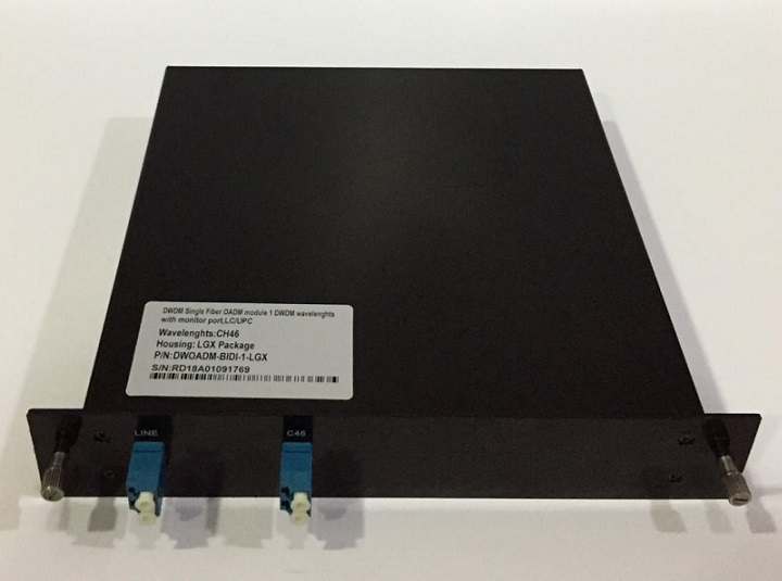 O Mux Demux 100G Dwdm-Bidi-1 Ch46 B1 Lc-Upc Single Fiber Lgx é um módulo OADM de fibra única DWDM. Projetado para sistemas de multiplexação por divisão de comprimento de onda, este dispositivo é capaz de adicionar e descartar diferentes canais de luz para dentro ou para fora de uma fibra de modo único.