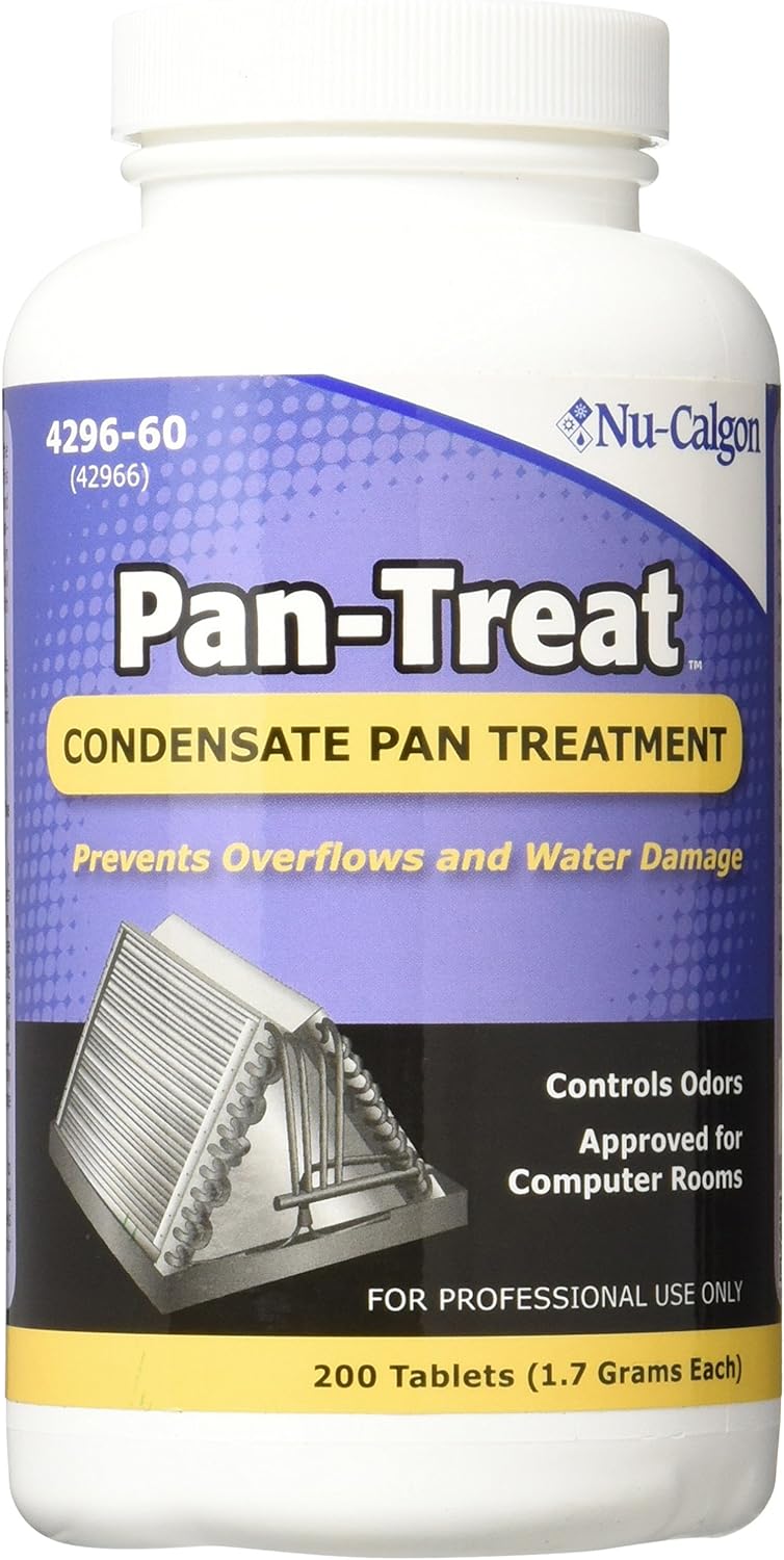 Evite problemas com o acúmulo de sujeira e depósitos viscosos que causam odores desagradáveis, entopem drenos e causam transbordos com o Nu-Calgon 4296-60 Pan-Treat Scum. Este produto elimina os custos extras de manutenção associados a odores, drenos entupidos e transbordos, sendo extremamente fácil de usar, completamente solúvel em água e não forma depósitos na bandeja ou no dreno. Os tabletes de condensado Pan-Treat controlam odores e previnem transbordamentos por meio de linhas de drenagem de condensado entupidas. Eles