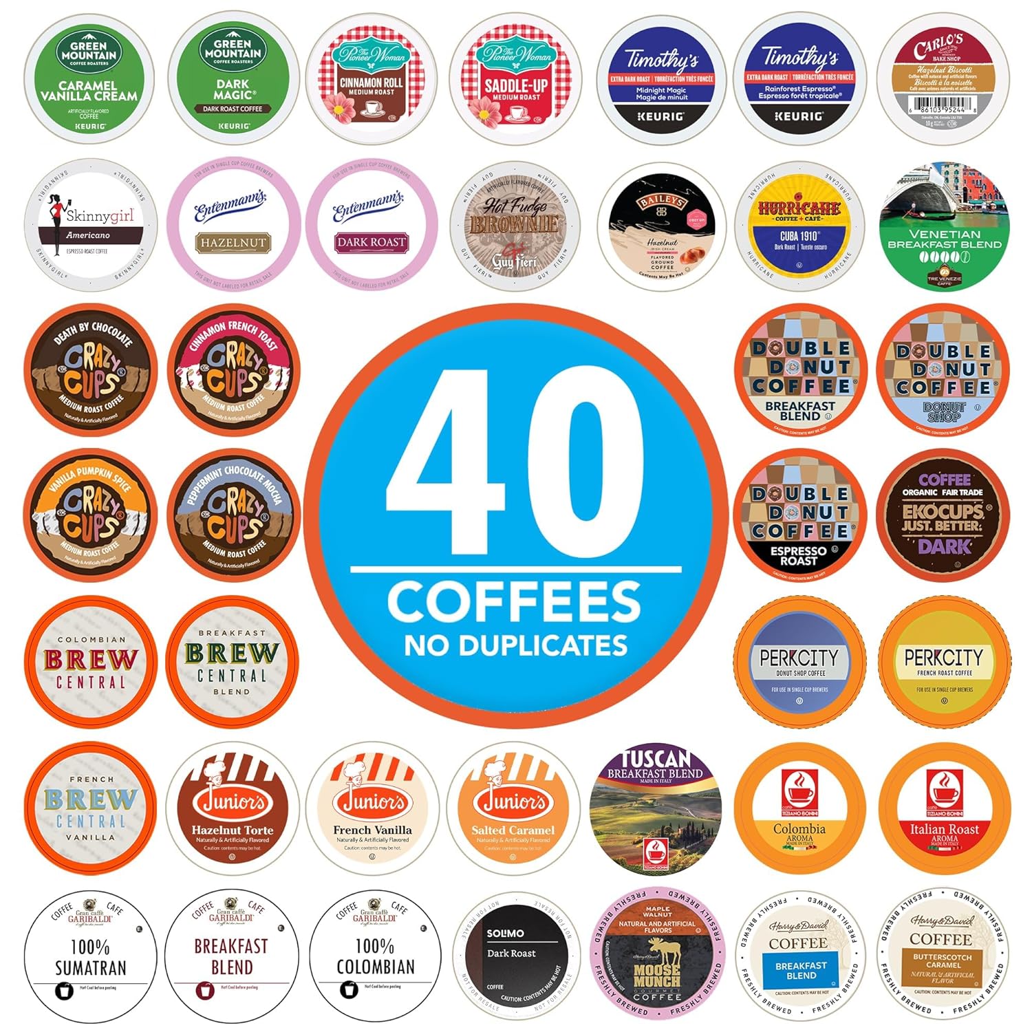 Pacote de Variedades de Cápsulas de Café, Amostra de Café em Dosagem Única para Máquinas de Café Keurig K Cups, 40 Copos Únicos - Ótimo Presente de Café.
