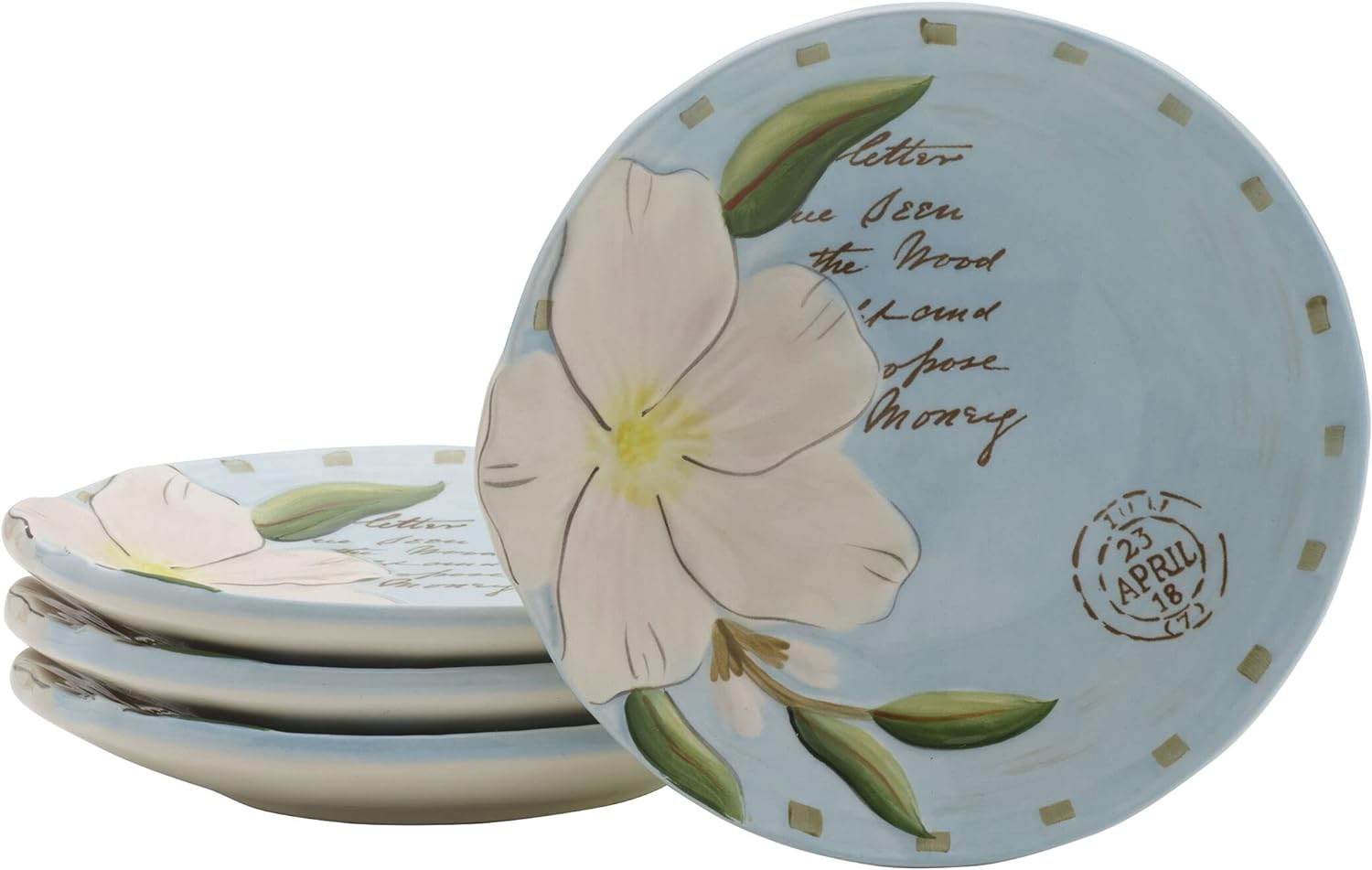 Os pratos para aperitivo da marca Fitz & Floyd possuem um belo design com detalhes pintados à mão de pássaros coloridos, borboletas e delicados adornos florais em um fundo azul pastel. Com um conjunto de 4 unidades, cada prato tem 5 polegadas de diâmetro, proporcionando um toque da tranquilidade do campo francês à decoração da sua casa. Feitos em cerâmica, esses pratos são fáceis de limpar, recomendamos lavagem à mão para preservar sua durabilidade. Compre agora e adicione um toque elegante às suas refeições!