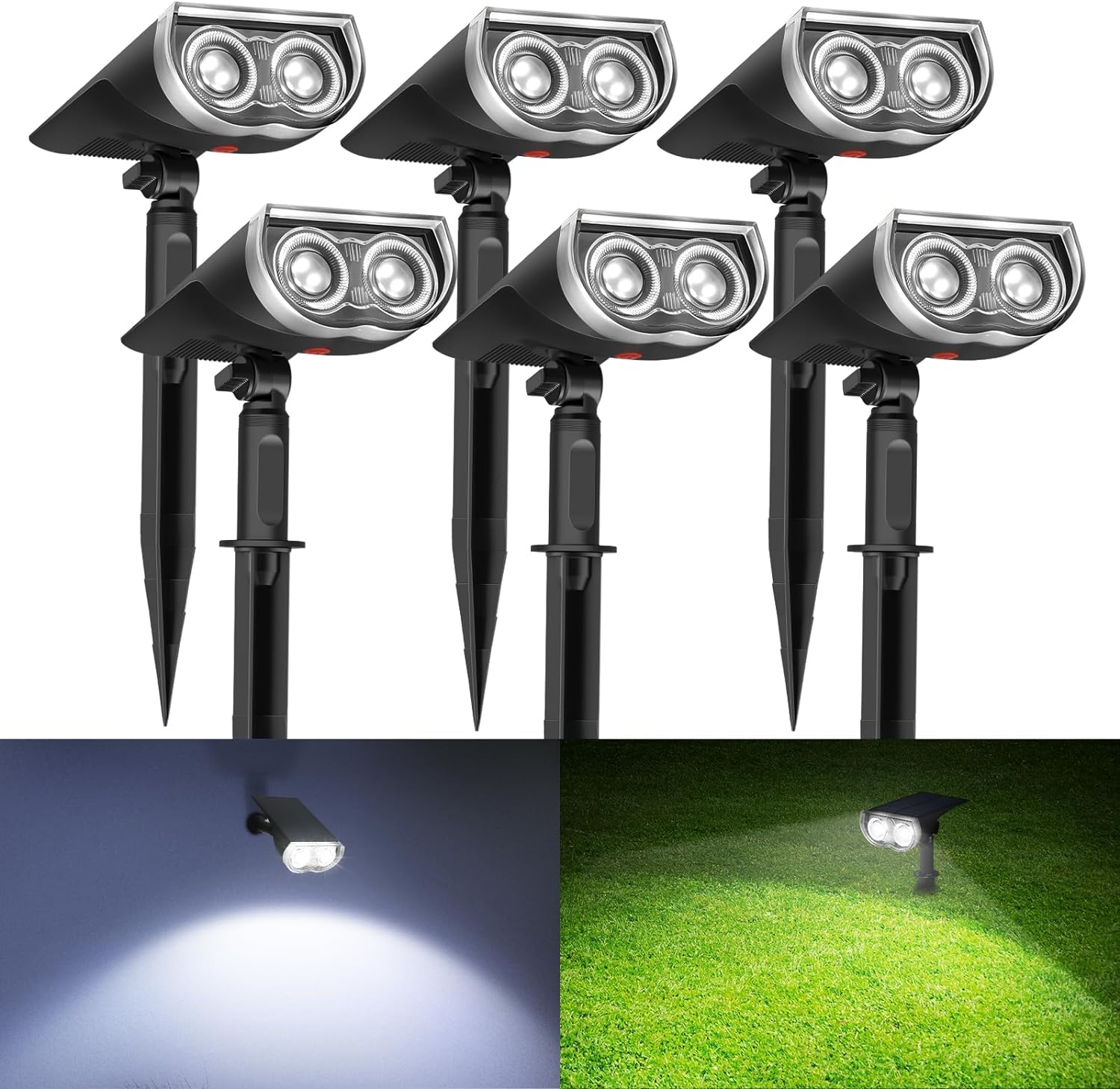 Refletores solares Consciot para área externa, refletores solares à prova d'água IP67, refletores solares 2 em 1 6500K luz do dia, refletores de paisagem crepúsculo