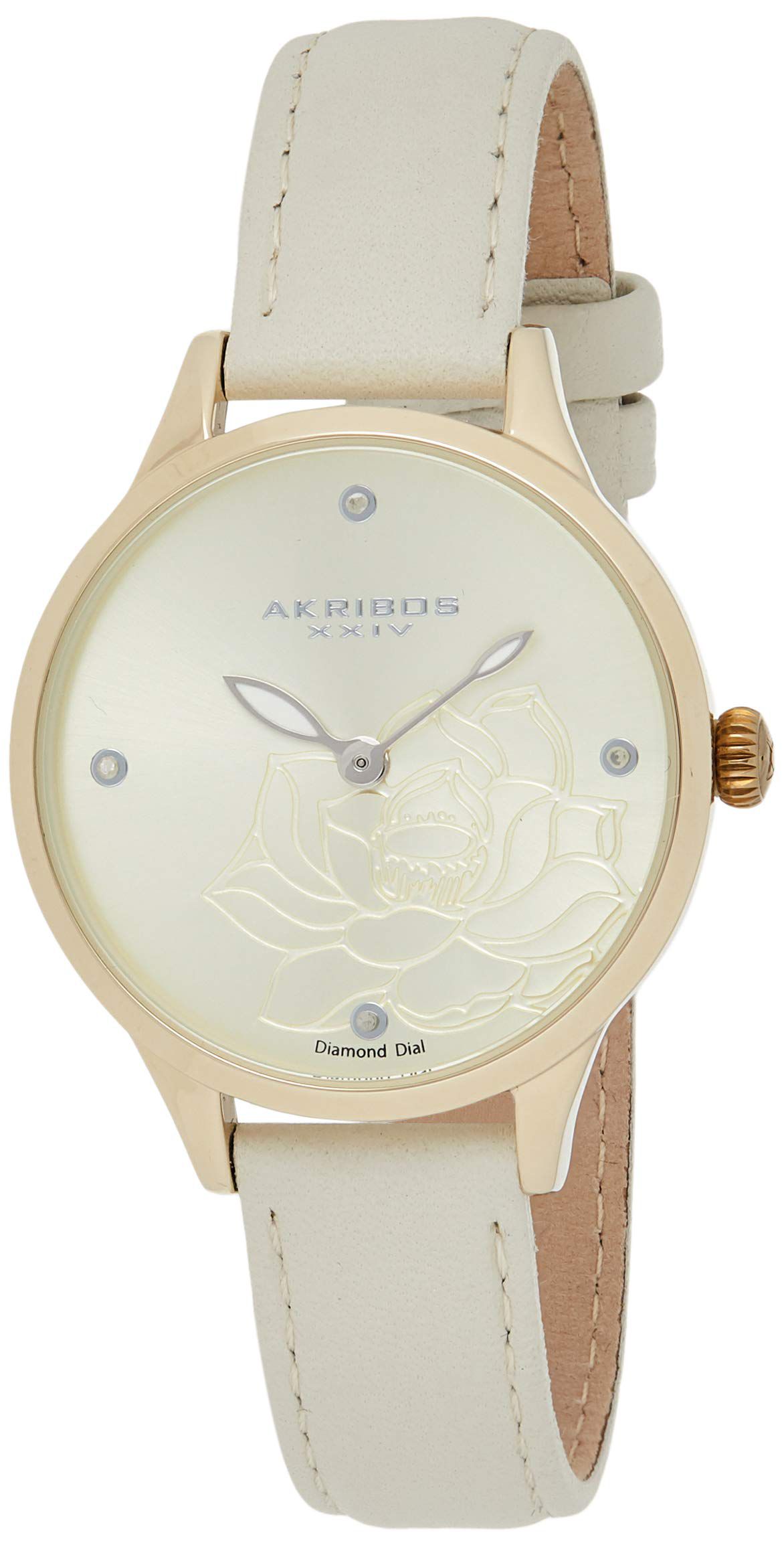 Procurando por um presente especial para o Dia das Mães? O relógio Akribos XXIV AK1047WT é a escolha perfeita! Este relógio feminino apresenta um mostrador gravado com flores e 4 marcadores de diamantes, combinando elegância e sofisticação. O relógio vem com uma pulseira de couro na cor Shell White, proporcionando um toque de delicadeza ao visual. Além disso, o produto vem em uma bela caixa de presente, tornando-o a opção ideal para surpreender e encantar as mães nessa data especial.