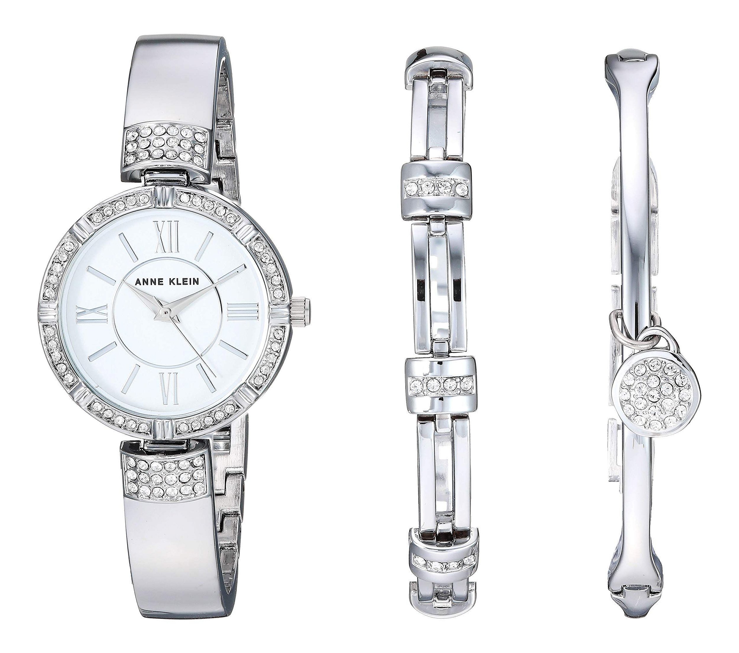 Procurando por um relógio sofisticado e elegante para complementar seu visual? Conheça o conjunto de relógio e pulseira Anne Klein Women's Premium Crystal Accented Watch and Bracelet Set AK/3295SVST. Com um deslumbrante tom de prata, este conjunto é perfeito para adicionar um toque de brilho e sofisticação ao seu visual.