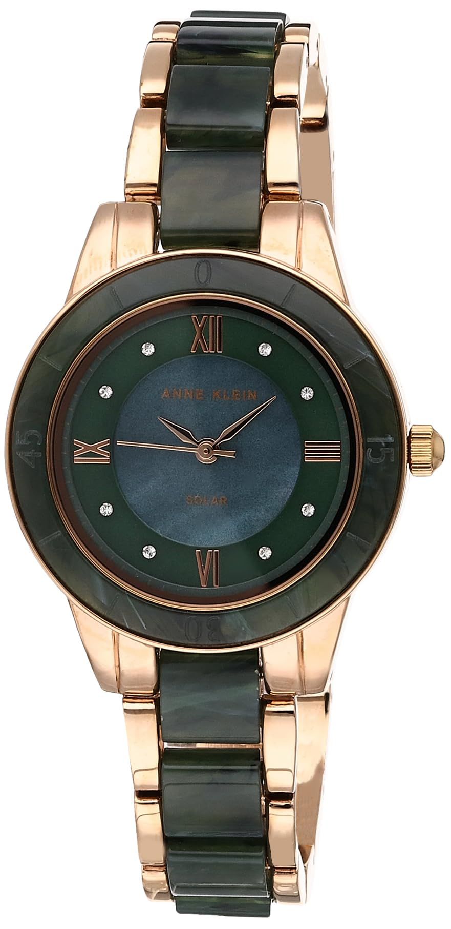 O Anne Klein AK/3610RGGN possui um design deslumbrante na cor Green/Rose Gold, que combina perfeitamente com qualquer look, do casual ao formal. Além disso, este relógio é equipado com um mecanismo solar, o que significa que nunca mais você precisará se preocupar em trocar pilhas. Basta expor o relógio à luz solar e ele estará pronto para ser usado.