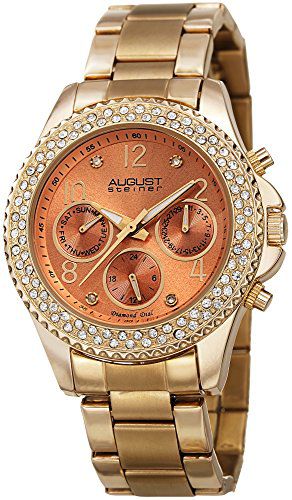 Procurando por um relógio elegante e funcional para adicionar à sua coleção? O August Steiner Women's Multifunction Watch - 3 Subdials Day, Date and GMT On Colored Dial Crystal Filled Bezel on Stainless Steel Bracelet - AS8136 é a escolha perfeita. Este relógio sofisticado possui um design moderno e versátil, com uma variedade de cores disponíveis, incluindo Gold, Orange, Copper, Silver, White e Black, para combinar com qualquer estilo.
