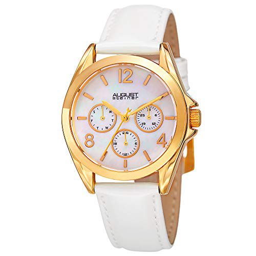 Procurando por um relógio elegante e sofisticado para adicionar um toque de glamour ao seu visual? Apresentamos o August Steiner Women's Multifunction Crystal Accented Watch - Mother of Pearl Dial and Alligator Embossed Genuine Leather Strap - AS8191. Este deslumbrante relógio em amarelo/dourado é a escolha perfeita para quem procura uma peça de alta qualidade que combine funcionalidade e estilo.