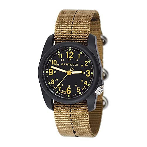 O Bertucci 11041 possui uma bela combinação de cores Black com dial Khaki e Coyote com band Dash, feito em Nylon resistente. Ele é resistente a água e choques, garantindo durabilidade e longa vida útil. Com sua pulseira ajustável e fecho de segurança, é ideal para uso diário ou para atividades ao ar livre.