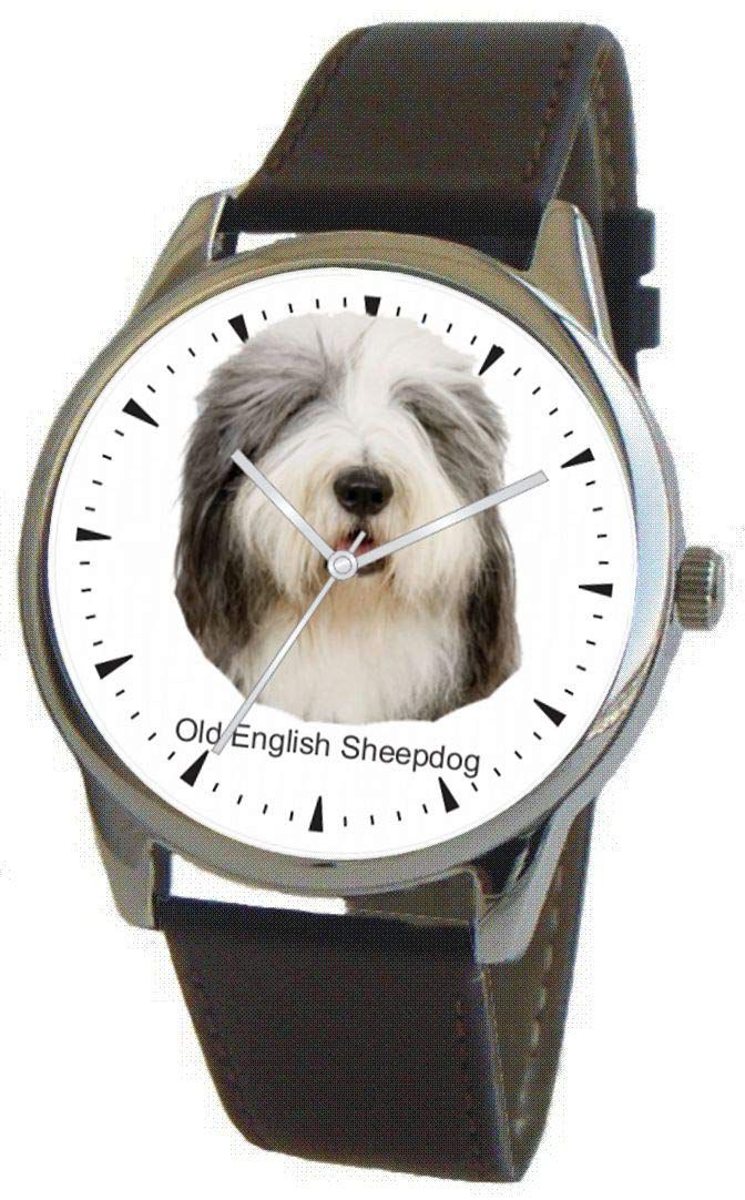 Este relógio deslumbrante apresenta um pingente de alta qualidade que exibe um retrato impressionante da raça Old English Sheepdog em um fundo de cromo polido. O design é elegante e minimalista, tornando-o perfeito para uso diário ou ocasiões especiais. A pulseira de couro adiciona um toque de sofisticação e durabilidade ao relógio, garantindo conforto e estilo.