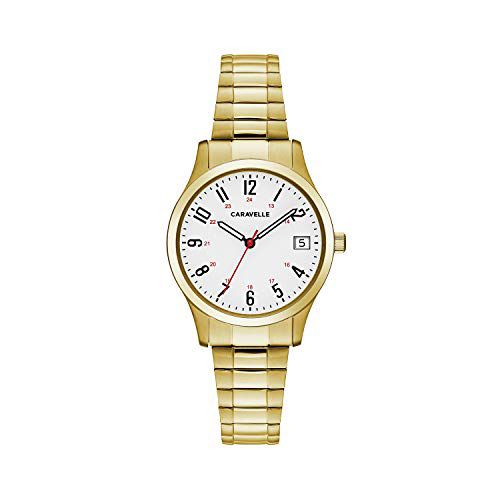 O Caravelle by Bulova Ladies' Traditional Quartz Gold-Tone Stainless Steel Expansion Band Watch, Style: 44M113 é uma escolha versátil, perfeita para uso diário ou para ocasiões mais especiais. Seja para acompanhar um look casual ou para adicionar sofisticação a um traje formal, este relógio é a escolha certa.
