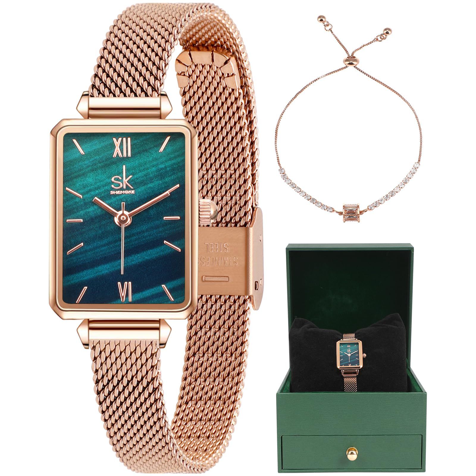 O SK Dainty Women's Wrist Watch é um presente perfeito para mulheres e entes queridos que apreciam a elegância e a sofisticação. Ele é entregue em uma elegante caixa de presente, tornando-o pronto para presentear. A cor verde do relógio adiciona um toque de frescor e elegância ao visual, tornando-o um acessório clássico e atemporal.