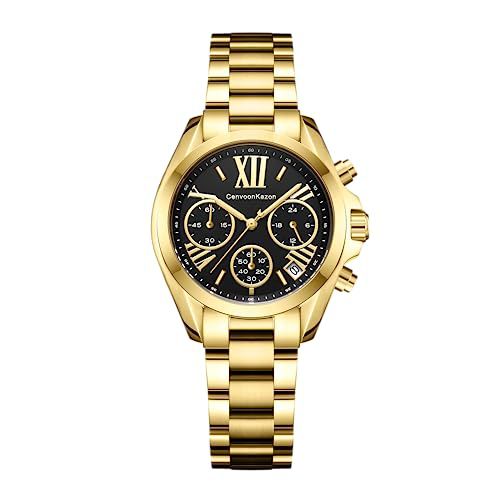 O DROCUAMGOYA CEK01 destaca-se pelo seu design refinado, com caixa e mostrador em tom de ouro, garantindo um toque de elegância e glamour ao seu pulso. Além disso, este relógio ainda conta com funcionalidades de data e cronógrafo, agregando ainda mais valor ao seu uso diário.