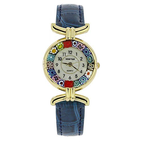 O GlassOfVenice Murano Glass Millefiori Watch with Leather Band - Blue Multicolor Glass Of Venice A_WA033D06_4 é um relógio de pulso sofisticado e elegante, que combina a beleza do vidro Murano com um design moderno e atemporal. Com sua cor azul multicolorida, esse relógio é uma peça única que adiciona um toque de cor e estilo ao seu visual.