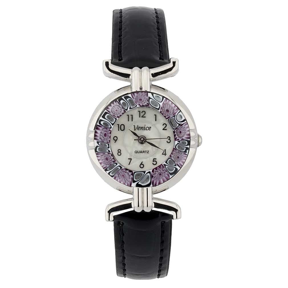 Compre agora e eleve o seu estilo com o GlassOfVenice Murano Glass Millefiori Watch with Leather Band - Black Glass Of Venice A_WA033D14_5!