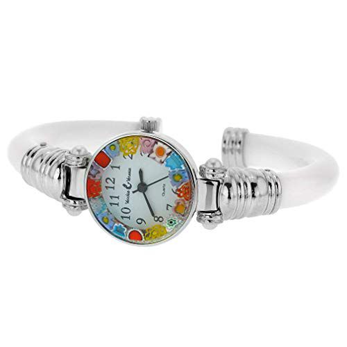 Procurando por um acessório sofisticado e único para adicionar um toque de elegância ao seu visual? Apresentamos o GlassOfVenice Murano Glass Millefiori Bangle Watch - Silver White Multicolor Glass Of Venice A_WA034D02_5. Este belo relógio é feito com vidro de Murano, conhecido por sua qualidade excepcional e artesanato habilidoso.