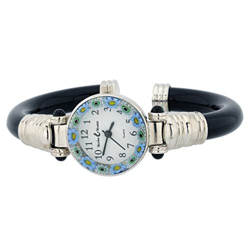 Procurando por um relógio de pulso elegante e único? O GlassOfVenice Murano Glass Millefiori Bangle Watch - Silver Black Glass Of Venice A_WA034D14_2 é a escolha perfeita! Com sua faixa preta de Millefiori de vidro Murano e detalhes em prata, este relógio é um verdadeiro encanto para os olhos.