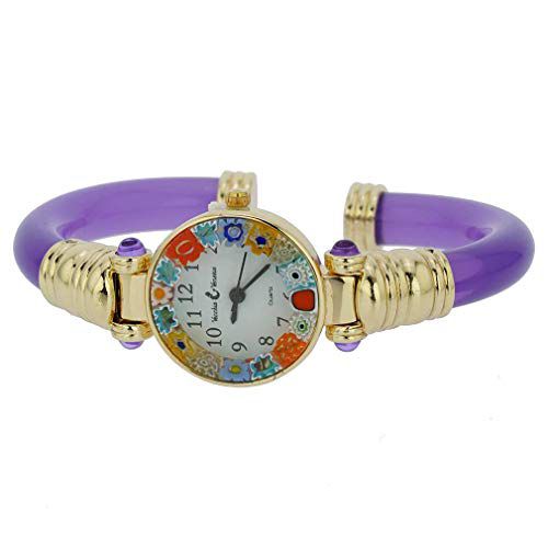 A NMS Comércio tem o prazer de apresentar o GlassOfVenice Murano Glass Millefiori Bangle Watch - Purple Gold Multicolor Glass Of Venice A_WA034DPR_1. Este deslumbrante bracelete de relógio é feito à mão com cuidado e habilidade pelos artesãos de Murano, famosos por suas peças de vidro únicas e deslumbrantes.