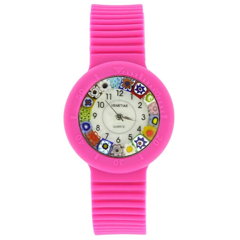 Procurando por um relógio único e elegante para adicionar um toque de sofisticação ao seu visual? Apresentamos o GlassOfVenice Murano Glass Millefiori Watch with Rubber Band - Pink Glass Of Venice CM_CARN_1. Feito à mão em Murano, Itália, este relógio deslumbrante apresenta um mostrador de vidro Millefiori em tons de rosa que adiciona um toque de cor e brilho a cada olhar.