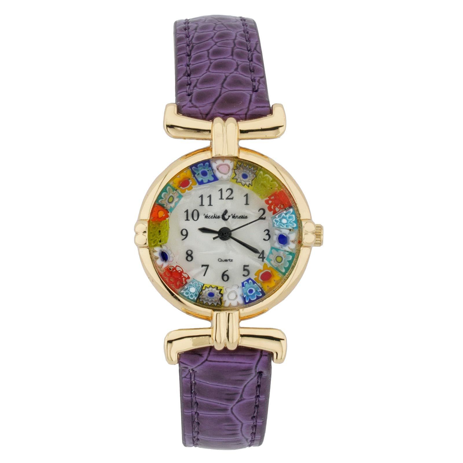 Compre o relógio Glass Of Venice Murano Glass Millefiori Watch Round Multicolor Gold-Tone na NMS Comércio. Este relógio exclusivo apresenta uma bela pulseira roxa e um mostrador millefiori multicolorido de 1 polegada, feito à mão na Itália. Combinando artesanato requintado e design exclusivo, este relógio é uma peça única que adicionará um toque de sofisticação ao seu estilo. Feito de vidro de Murano, conhecido por sua qualidade e beleza, o relógio é durável e resistente. Adquira o seu hoje e desfrute da elegância e qualidade deste relógio artesanal. Compre agora e experimente a verdadeira qualidade da Glass Of Venice.