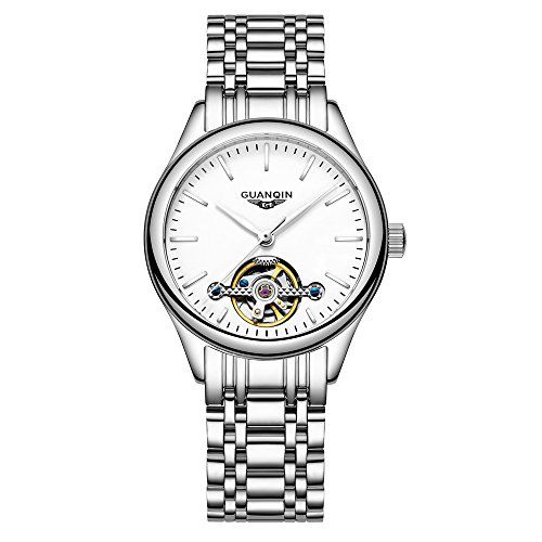 O relógio de pulso automático feminino GUANQIN Women Automatic Self Winding Wrist Watch with Scratch-Resistant Sapphire Crystal Lens Steel Leather Bracelet (Silver White) GUANQIN GJ16061fsc é a escolha perfeita para mulheres que buscam um acessório elegante e funcional. Com sua pulseira de couro de aço resistente e lente de cristal de safira resistente a riscos, este relógio oferece durabilidade e estilo duradouro.
