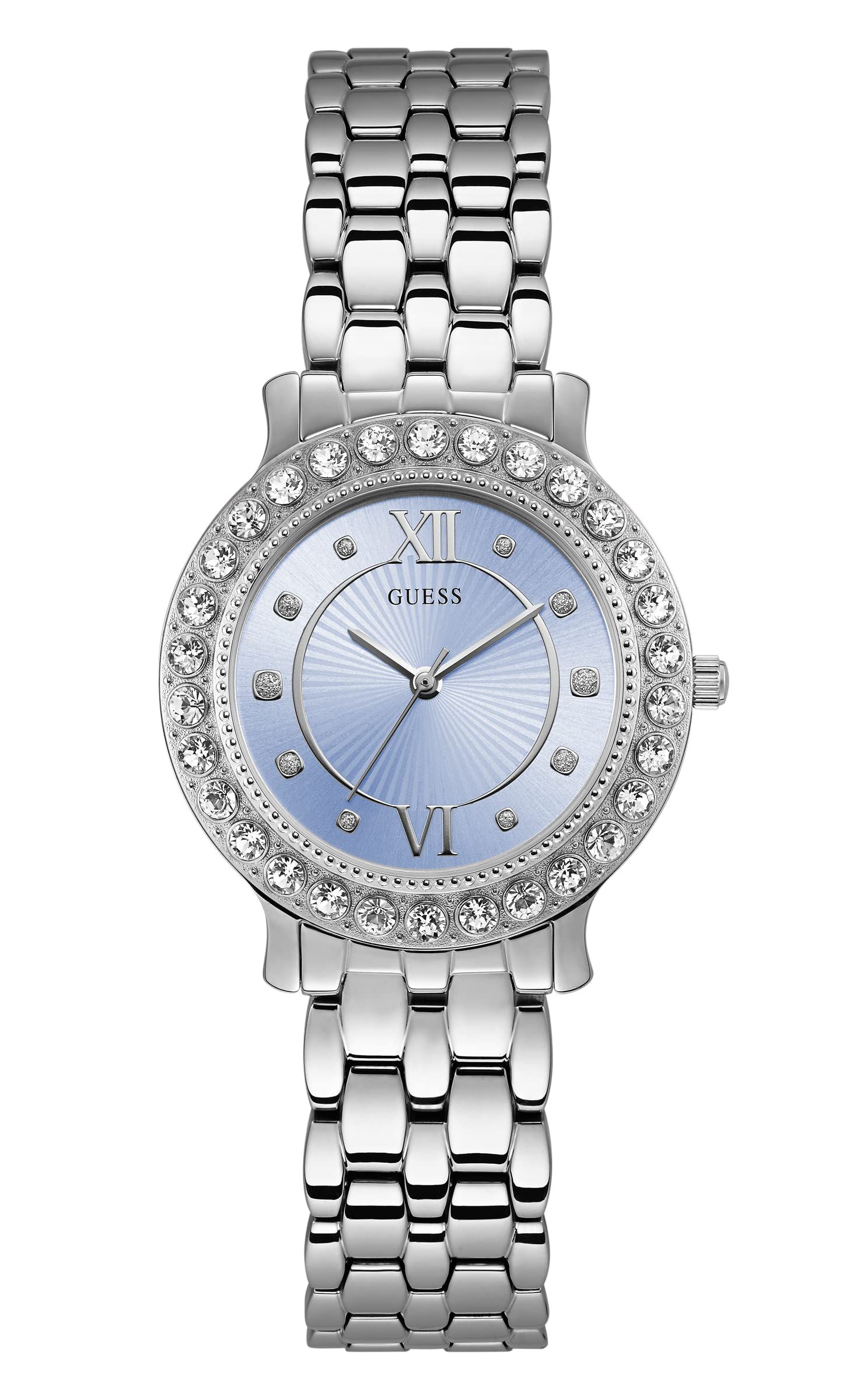 Compre agora o GUESS Ladies 34mm Watch - Silver Tone Bracelet Blue Dial Silver Tone Case GUESS U1062L6 na NMS Comércio e eleve o seu look com este incrível acessório de moda.