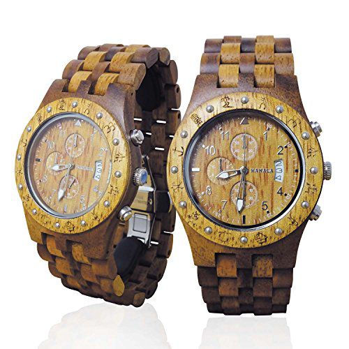 Se você procura por um relógio de pulso único e artesanal, o Handmade Wooden Watch Made with Asian Koa Wood and Hawaiian Mango Wood da marca Kahala é a escolha perfeita para você. Este incrível acessório combina a elegância da madeira de Koa asiática com a beleza exótica da madeira de Manga do Havaí, resultando em um relógio verdadeiramente espetacular.
