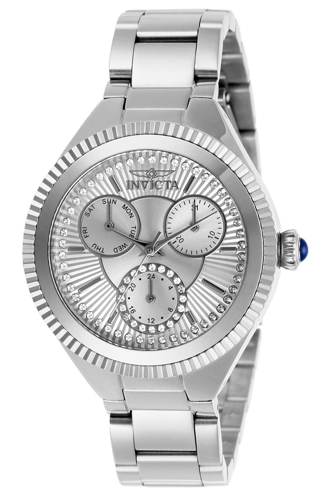 O Invicta Lady Angel Quartz Watch, Silver, 28347 é um relógio elegante, luxuoso e sofisticado para mulheres. Seu design é moderno e atemporal, perfeito para usar em qualquer ocasião. Feito com materiais de alta qualidade, este relógio possui um mostrador prateado com marcadores e ponteiros luminosos, além de um detalhe em cristal na caixa, que proporciona um toque de glamour ao acessório.