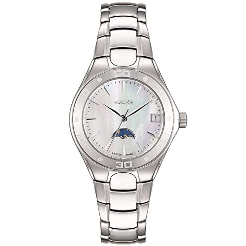 Os relógios KULUZE Titanium Women's Swiss Quartz Movement são a escolha perfeita para mulheres que buscam elegância, sofisticação e funcionalidade. Com um design moderno e elegante, este relógio apresenta uma fase lunar e data, destacando-se como um acessório versátil e luxuoso.