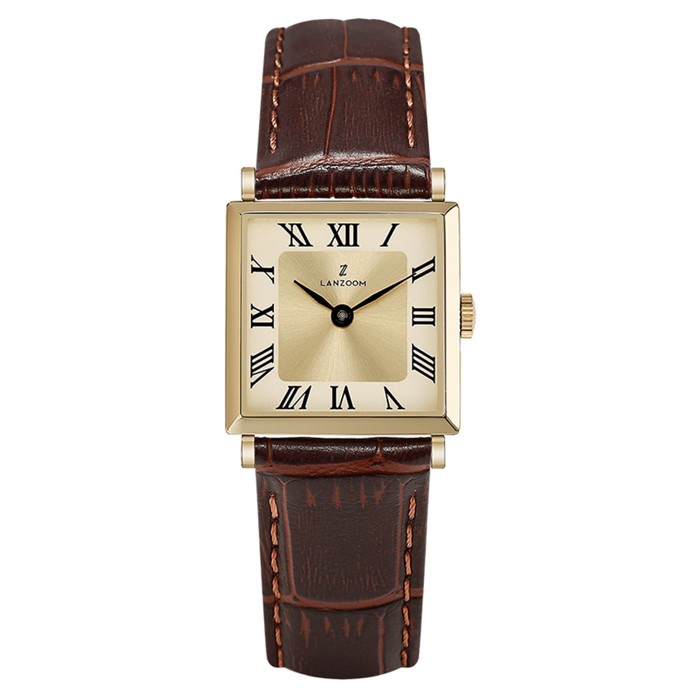 O LANZOOM Gold Vintage Women's Quartz Watch apresenta uma caixa de aço inoxidável 316L que garante durabilidade e resistência. Seu mostrador quadrado exibe numerais romanos, proporcionando um toque de sofisticação e tradição ao relógio. A pulseira de couro marrom complementa perfeitamente o design dourado do relógio, conferindo um visual vintage e elegante.